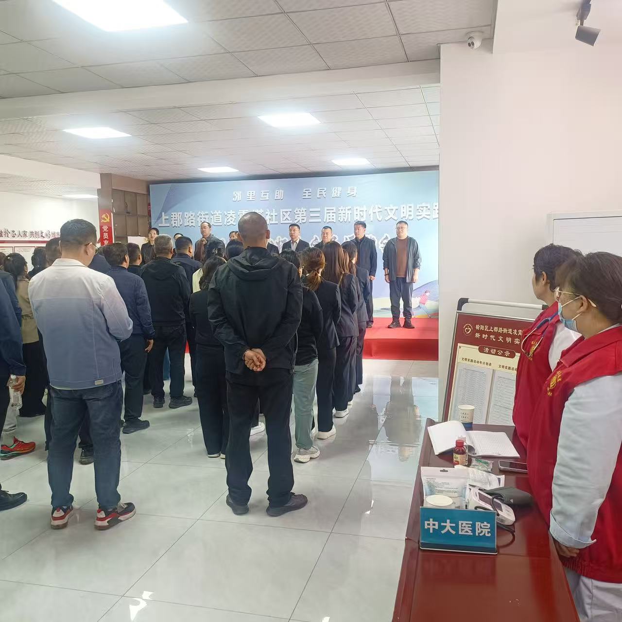 为响应“全民健身”的健康理念,榆阳区上郡路街道办事处、榆阳区体育训练中心、榆阳区新时代文明实践指导中心”于2026年4月24日上午8:30,在榆阳区上郡路街道凌霄塔社区内,联合组织了凌霄塔社区第三届新时代文明实践“邻里互助杯”全民运动会。榆林中大医院党支部带领榆林中大医院慈善志愿者服务队整装出发,全力开展应急救援和健康指导的同时为参赛运动员助力加油